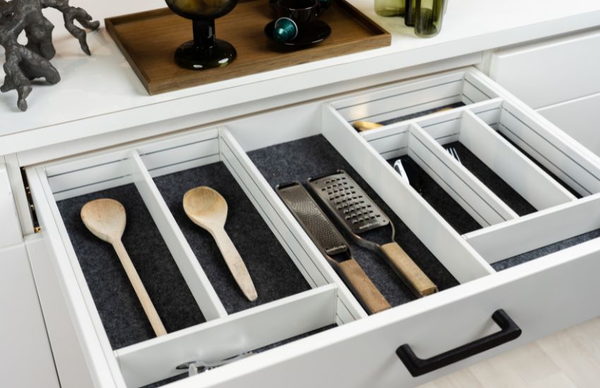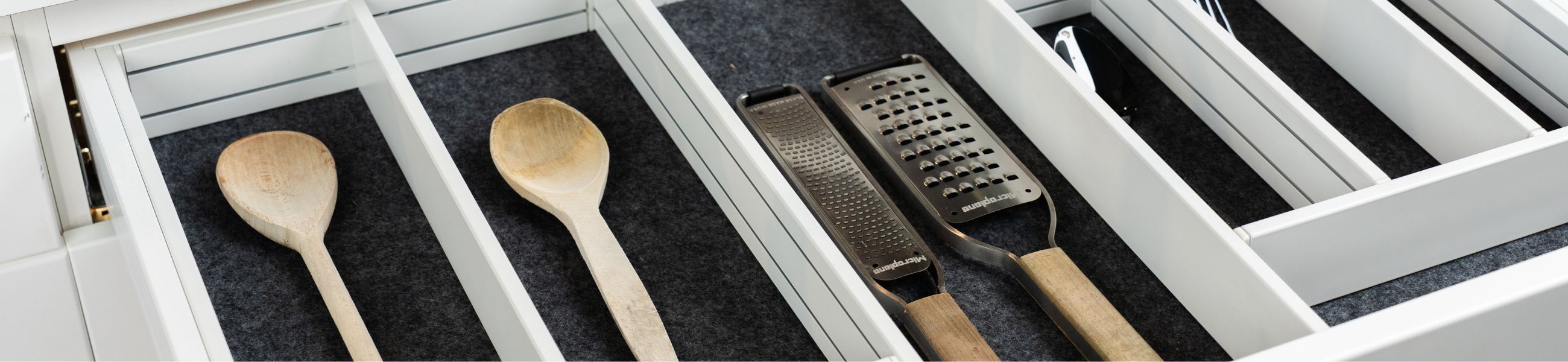 Schubladeneinsätze & Besteckkasten – Einsätze für Besteck, Messer, Gewürze und Folien, die helfen, Schubladen organisiert und leicht zugänglich zu halten.