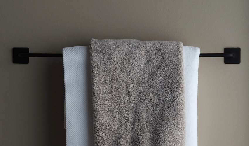 Unsere wandmontierten Handtuchhalter lassen sich einfach neben Dusche oder Badewanne platzieren, sodass das Handtuch stets griffbereit ist. Mehrere Modelle sind auf der Rückseite mit selbstklebendem 3M-Klebeband ausgestattet und damit die perfekte Lösung, wenn Sie auf das Bohren in Fliesen verzichten möchten. Selbstklebende Haken werden schnell montiert, indem die Oberfläche gereinigt, die Schutzfolie entfernt und der Halter fest an die Wand gedrückt wird. Für ein optimales Ergebnis sollte die Oberfläche eben und trocken sein, und der Halter sollte erst nach etwa 24 Stunden belastet werden.