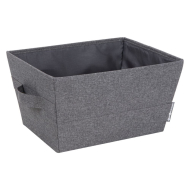 Dieser stilvolle und praktische Aufbewahrungskorb aus grauem Textil ist die perfekte Lösung für alle, die Funktionalität mit modernem Design verbinden möchten. Dank seiner großzügigen Größe bietet er Platz für alles von Decken und Kleidung über Spielzeug und Zeitungen bis hin zu Recyclingmaterial – ideal für Wohnzimmer, Flur, Schlafzimmer oder Büro. Der Korb ist aus strapazierfähigem Polyester gefertigt und hat eine robuste Konstruktion, die auch bei nicht voller Beladung formstabil bleibt. Die dezenten Möbelgriffe an den Seiten erleichtern das Anheben und Umstellen. Eine stilvolle und vielseitige Aufbewahrungslösung, die Ihnen hilft, Ordnung zu halten – egal wo in Ihrem Zuhause Sie sie platzieren.