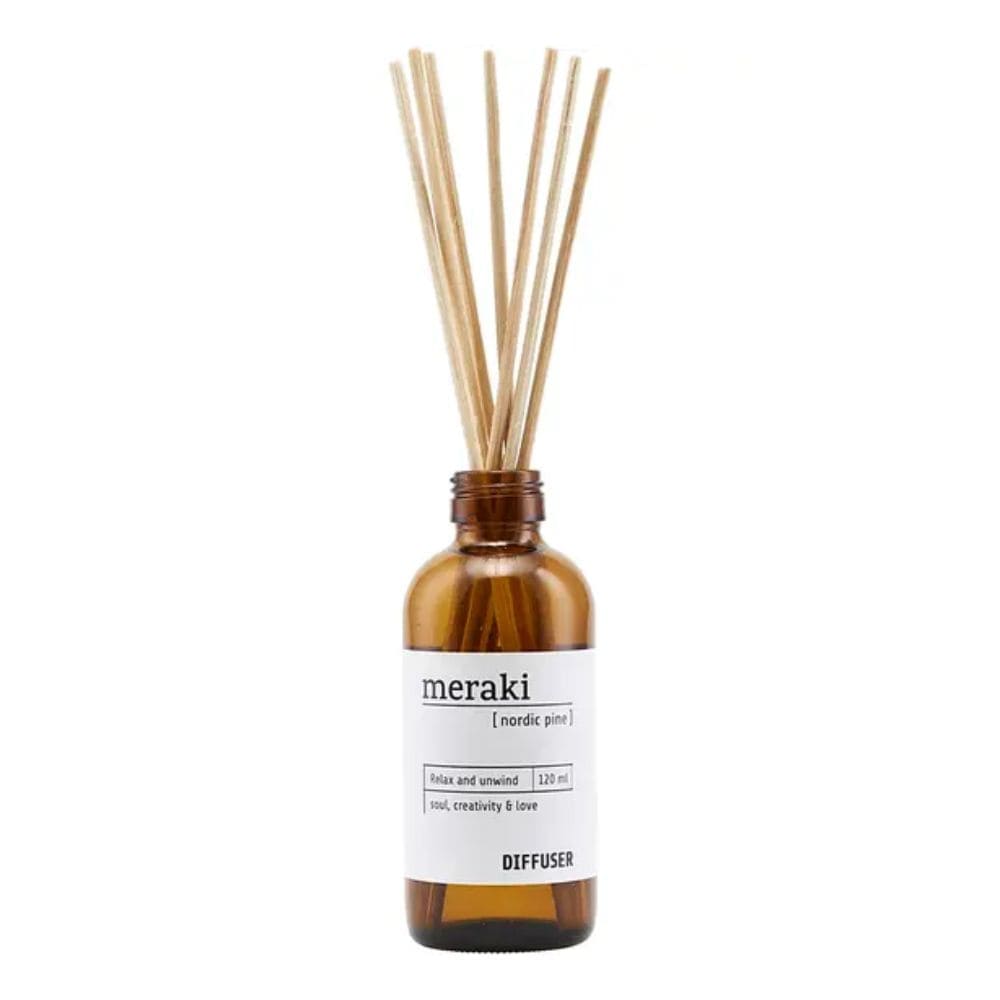 Verleihen Sie Ihrem Zuhause mit den Raumduftstäbchen von Meraki ein harmonisches Dufterlebnis. Die eleganten Glasflakons enthalten Duftöl und Stäbchen, die nach und nach einen sanften und angenehmen Duft im Raum verbreiten. Nordic Pine bietet einen frischen, holzigen Duft mit einem Hauch von Harz und Kiefer, inspiriert von den friedvollen nordischen Kiefernwäldern – ein Duft, der Ruhe und Frische im ganzen Haus schafft.