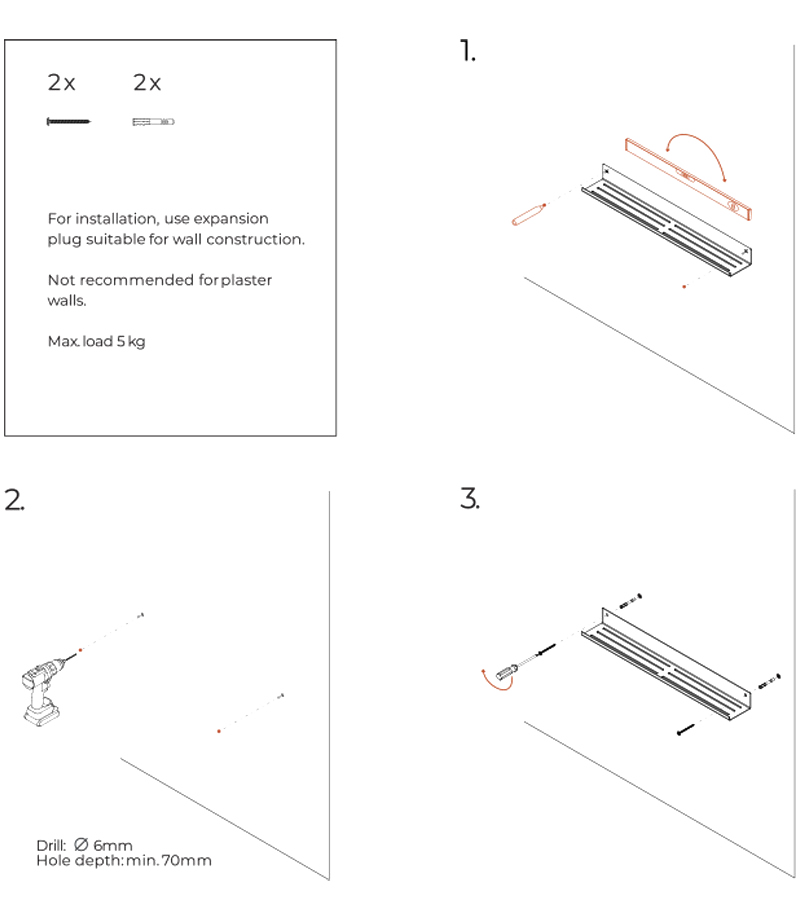 Montage mit Schrauben, max. Belastung 5 kg