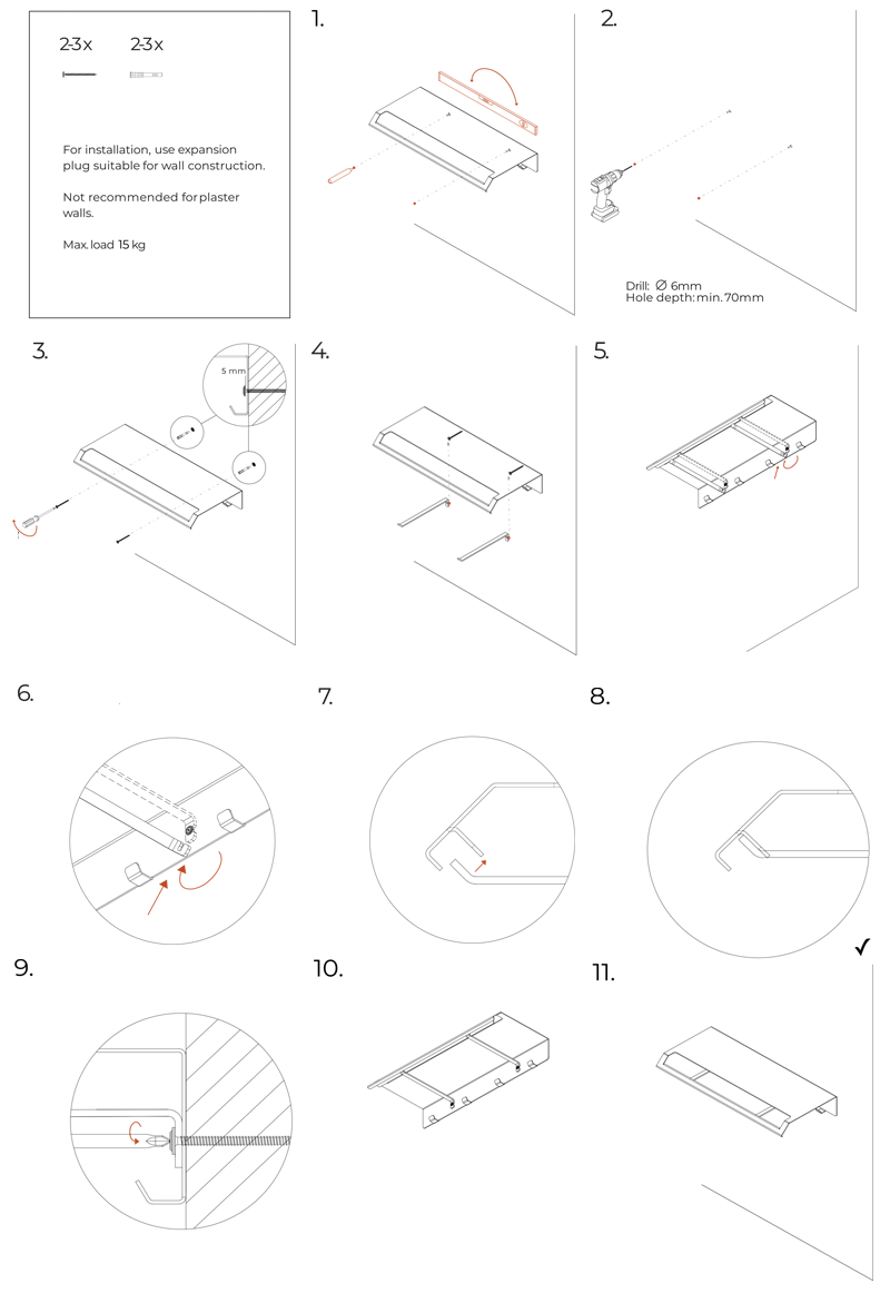 Montage mit Schrauben, max. Belastung 15 kg
