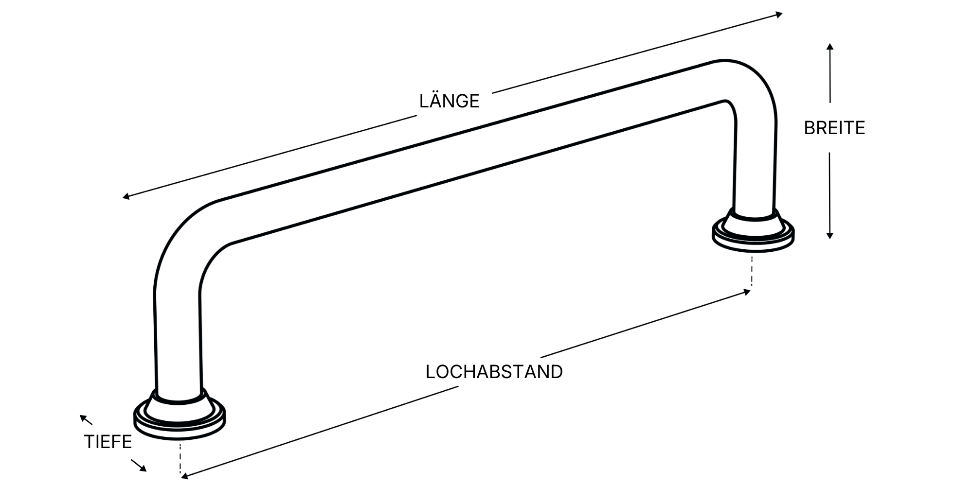 Der Abstand zwischen den Schraubenlöchern wird als Lochabstand (C/C-Abmessung) bezeichnet und steht für Mitte zu Mitte. Er wird immer in Millimetern angegeben. Sie können Ihren vorhandenen Lochabstand ganz einfach ermitteln, indem Sie den Abstand zwischen den Mittelpunkten der Schraubenlöcher messen.