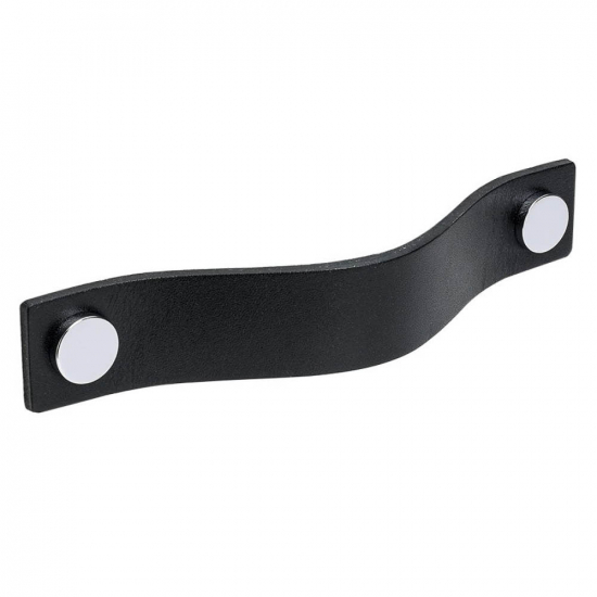 Möbelgriff Loop - 128mm - Leder Schwarz/Chrom