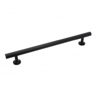 Der Portland-Möbelgriff von Beslag Design in Mattschwarz besticht durch seine geriffelte Oberfläche, die für einen komfortablen Halt und eine ansprechende Optik sorgt. Er passt sowohl in die Küche als auch an den Kleiderschrank und lässt sich ideal mit den passenden Knöpfen der gleichen Serie kombinieren.