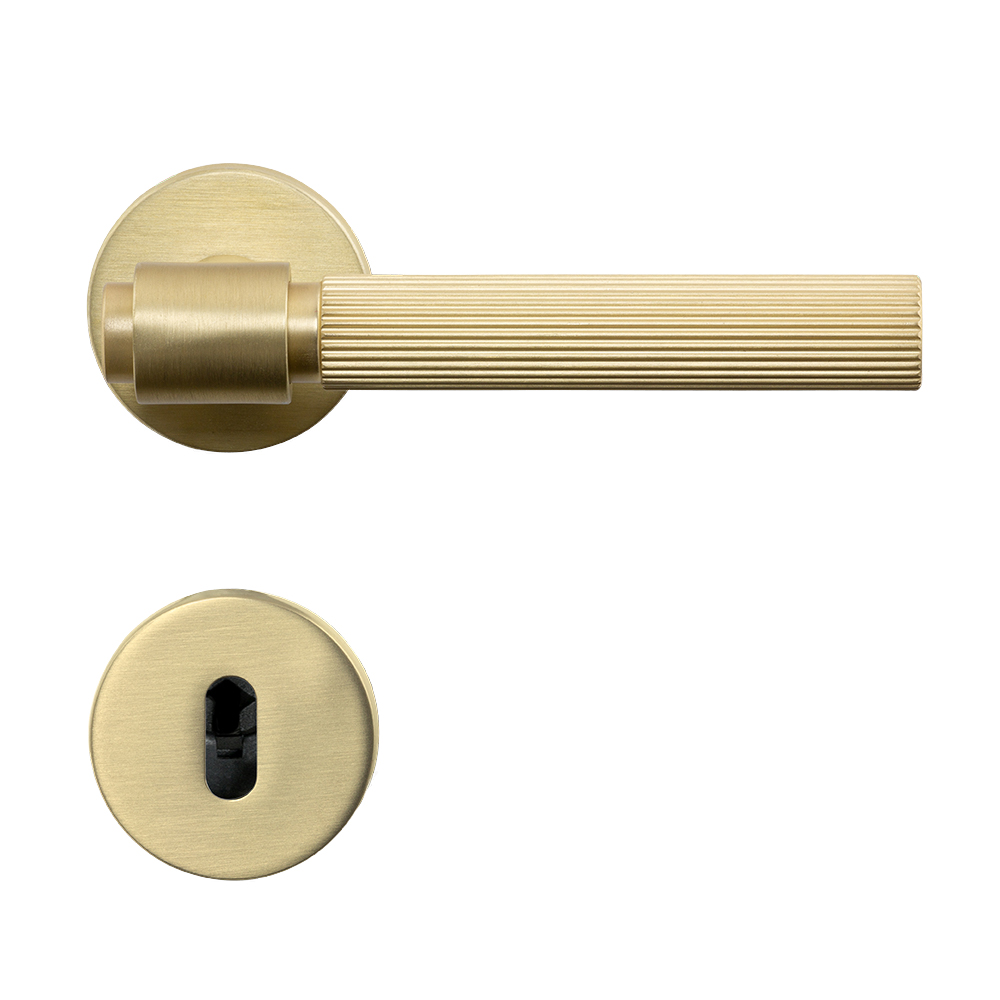 Das Produkt ist aus Aluminium gefertigt und verfügt über eine Oberflächenbehandlung, die ihm eine Messingoptik verleiht. Das Produkt patiniert nicht, sondern behält seinen Glanz und seine Farbe über lange Zeit. Marke – Beslag Design