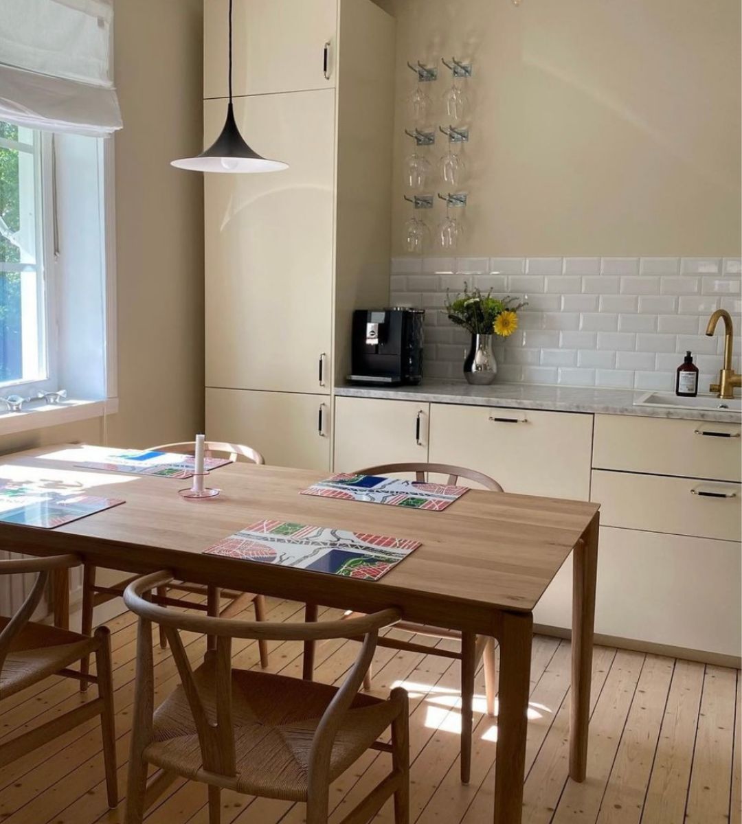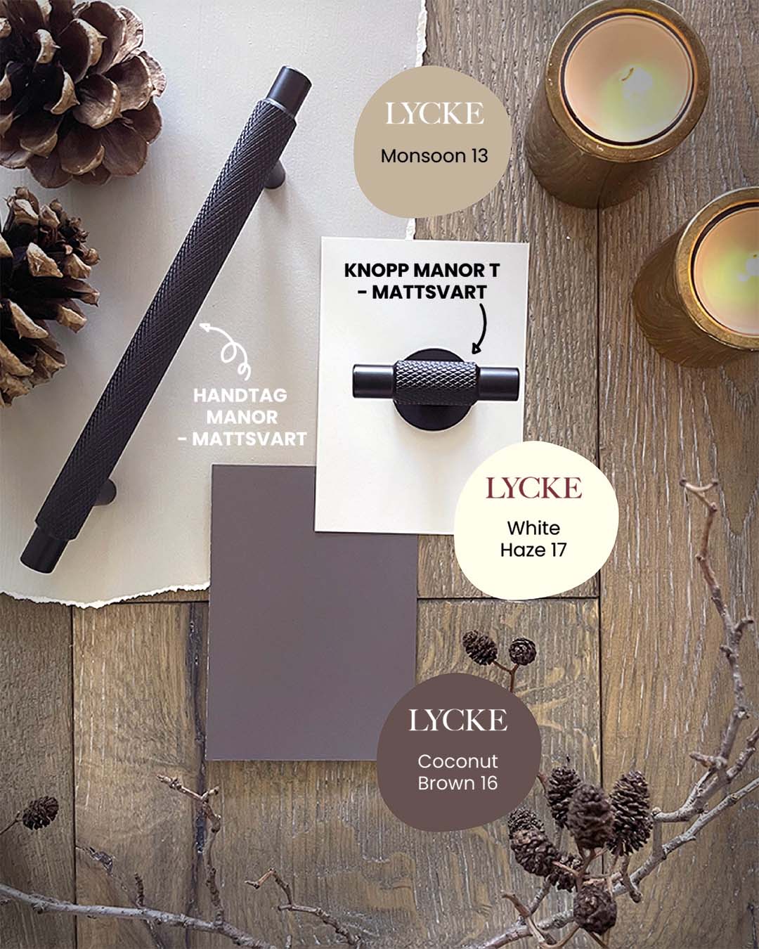 VORHER. Linn wollte ihre Küche modernisieren. Sie wünschte sich eine wärmere Atmosphäre und entschied sich daher, neu zu streichen und die Beschläge auszutauschen. Um sowohl Wände als auch Fronten zu streichen, verwendete sie Lycke Tischler- & Lackfarbe.