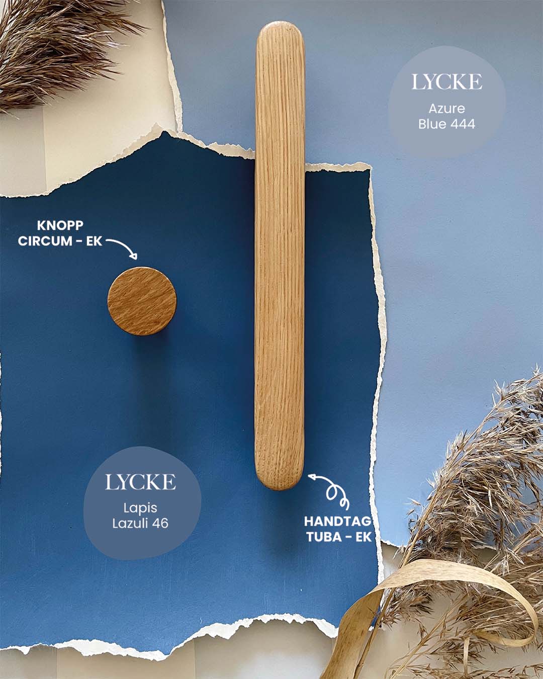 Blautöne aus Lyckes Farbfamilie Ocean Air, inspiriert vom Himmel und Meer des Mittelmeers, harmonieren besonders gut mit der reduzierten, natürlichen Ausstrahlung von Eichendetails.
