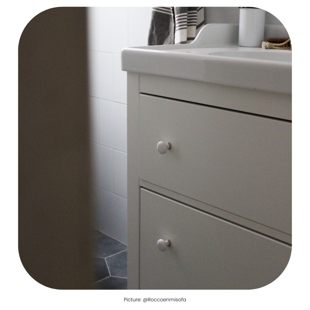 Ein guter Tipp, um dein Badezimmer aufzufrischen, ist der Austausch der Griffe oder Knöpfe an der Waschtischkommode. Auch durch neue Badaccessoires wie Toilettenpapierhalter oder Handtuchhalter kannst du deinem Badezimmer ein stimmiges Aussehen verleihen – perfekt abgestimmt auf deine Mietwohnung.