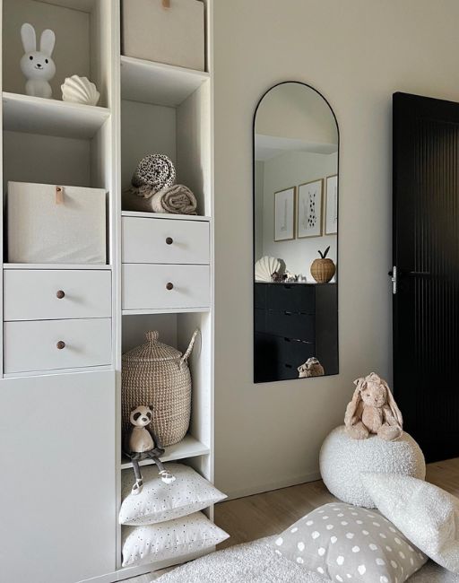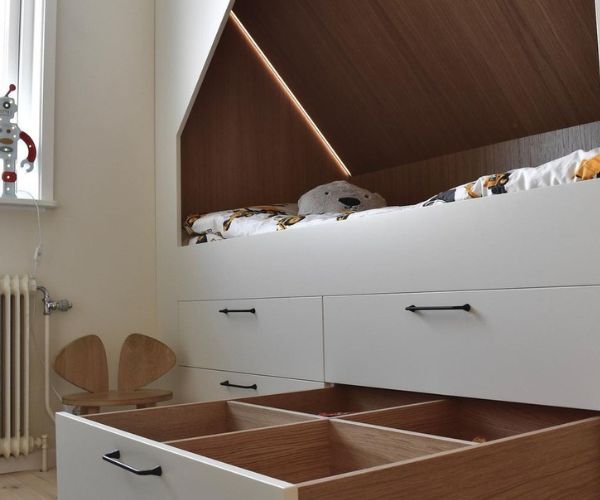 Gib deinem Kind einen eigenen Kleiderschrank mit Platz für alle Kleidungsstücke. Pullover, Hosen, Pyjamas, Unterwäsche, Schuhe und festliche Kleidung sollten jeweils ihren eigenen Platz haben. Mit durchdachten Lösungen kann der Kleiderschrank mit deinem Kind mitwachsen.