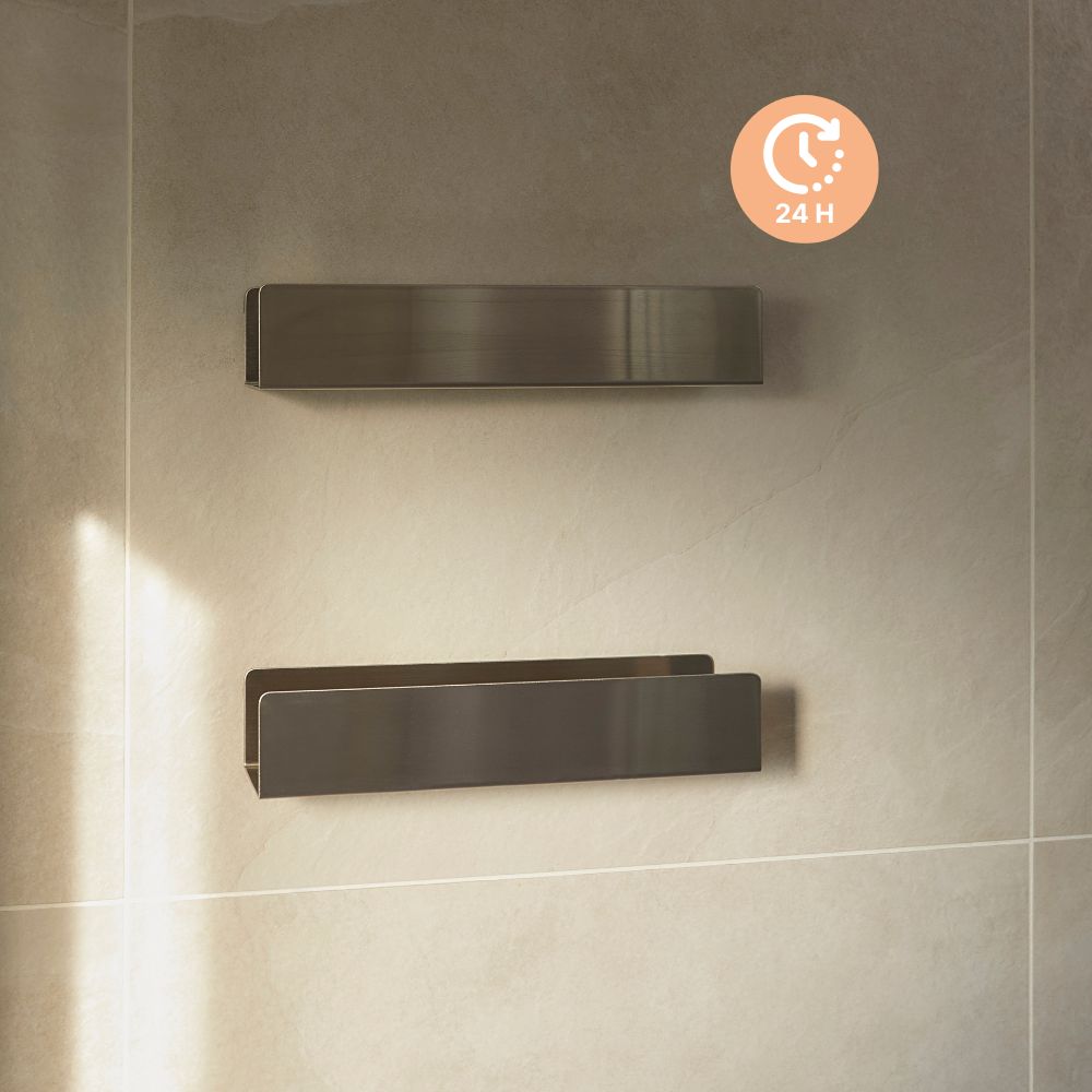 – Absolut! Es eignet sich perfekt für Shampoo, Spülung und Duschgel. Du kannst es auch an anderen Stellen im Badezimmer platzieren, wo du zusätzliche Ablage brauchst – oder als dekoratives Detail für Duftkerzen oder Parfum.