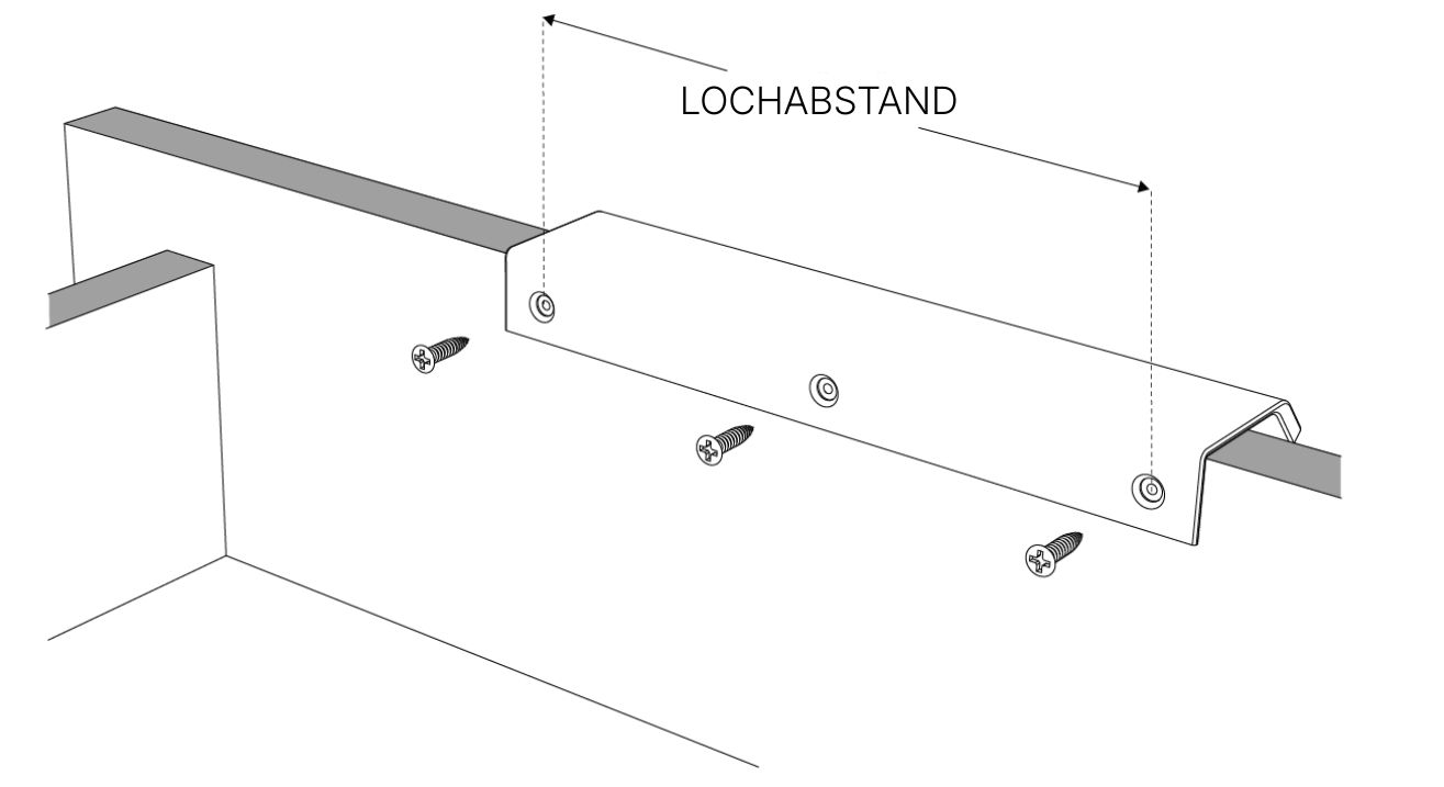 Griffleisten von der Innenseite der Schublade oder Front montiert werden und die Schrauben nicht durch das Material hindurchgehen sollen.